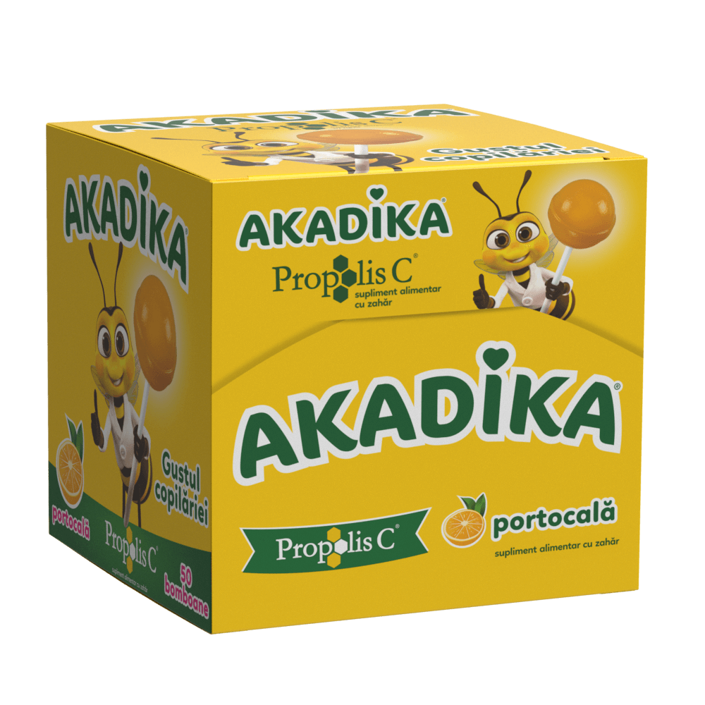 Acadele cu propolis, vitamina C si aroma naturala de portocala, ideale pentru calmarea iritatiilor din gat si sustinerea sistemului imunitar, Akadika Propolis C, Fiterman.