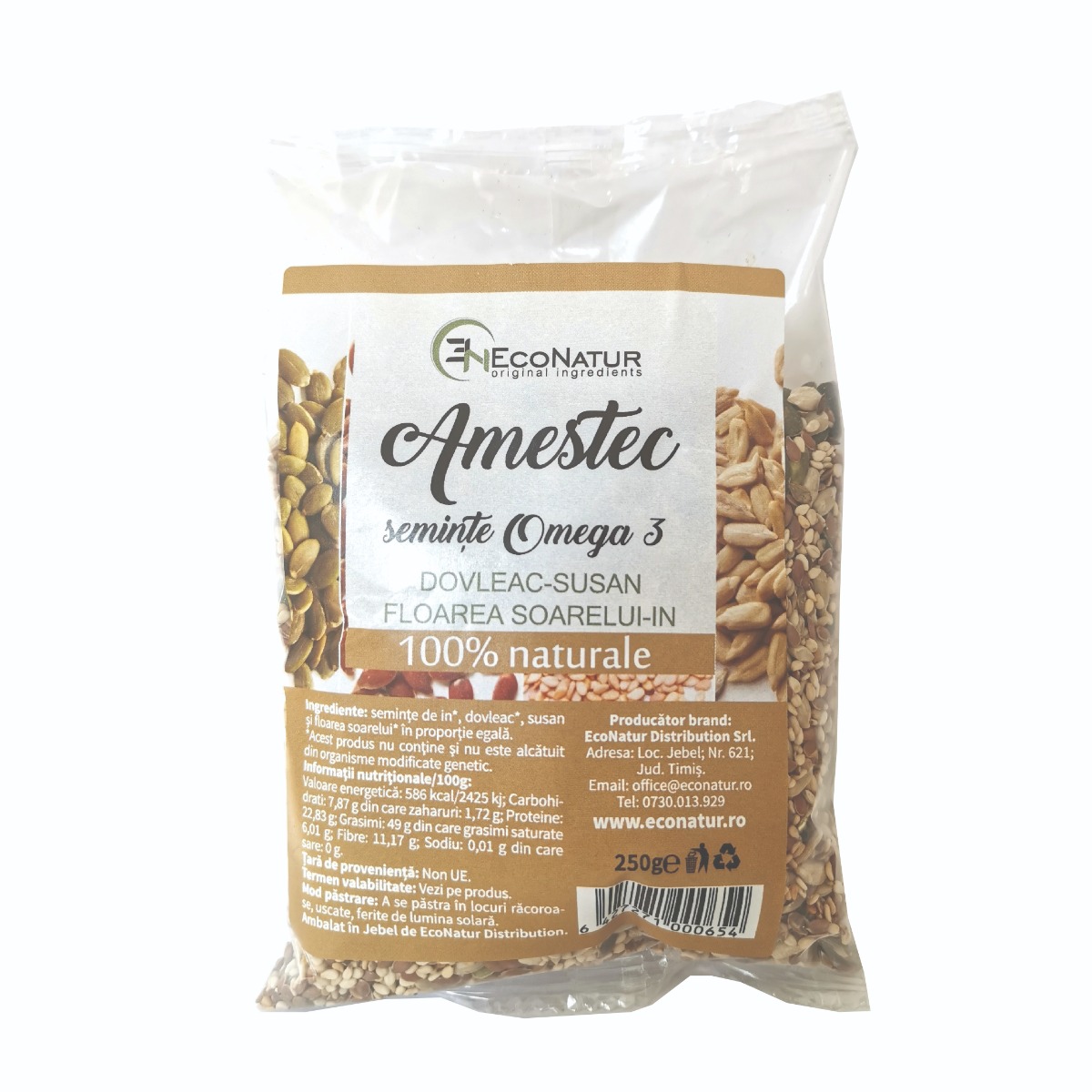 Acest produs Amestec de seminte Omega 3, 250g, EcoNatur din categoria Dieta si nutritie se poate comanda online la un pret redus.