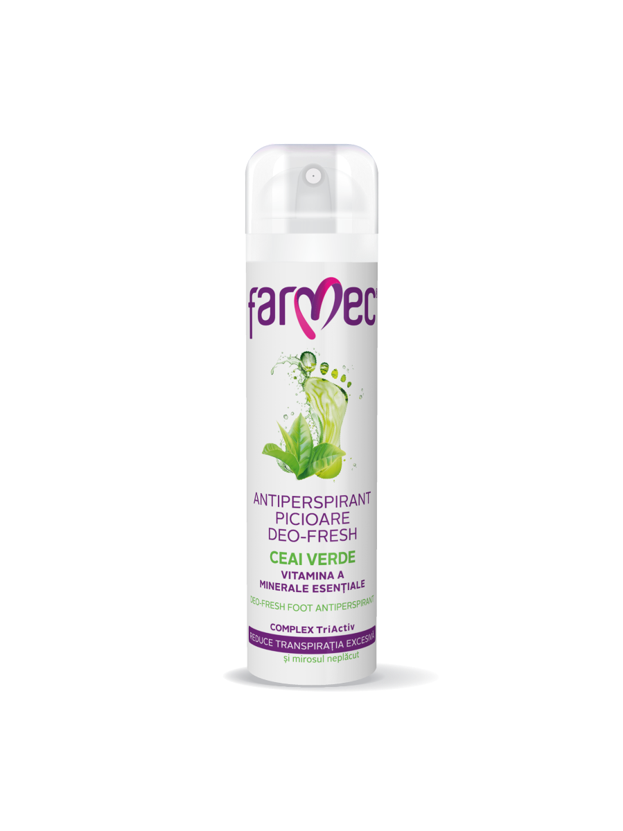 Farmec Antiperspirant Picioare Deo-Fresh cu Ceai Verde este destinat controlului transpirației picioarelor și mirosului neplăcut generat de aceasta. Acest deodorant pentru picioare este potrivit atât pe timp de vară, cât și în încălțămintea de iarnă ori de sport....