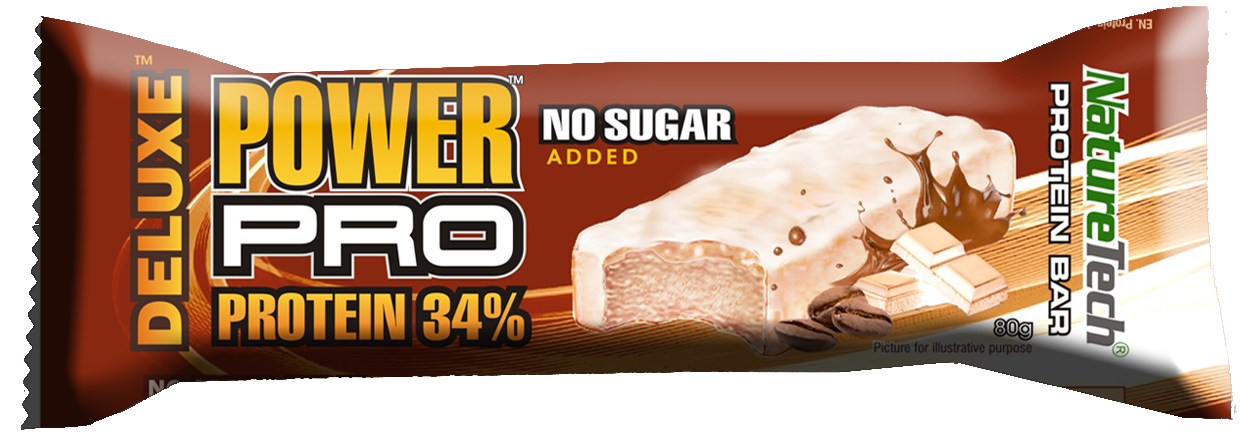 Baton proteic in invelis de glazura alba Power Pro DELUXE 34% proteina, cu aroma mocca.