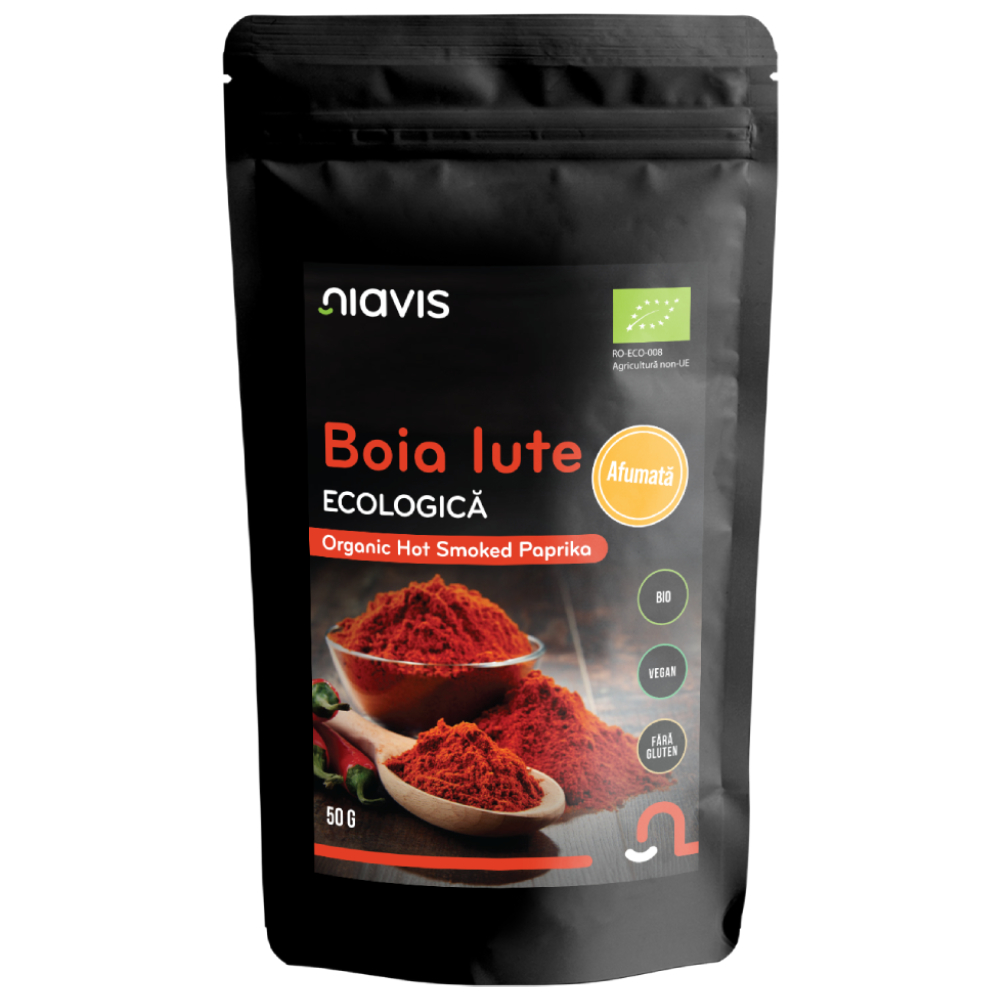 Acest produs Boia iute afumata ecologica, 50g, Niavis din categoria Dieta si nutritie se poate comanda online la un pret redus.