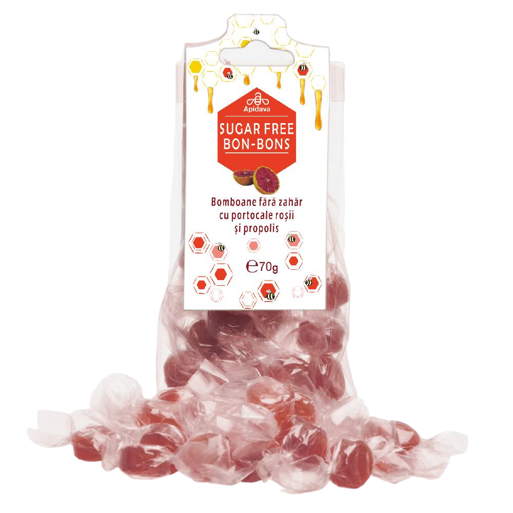 Fabricate in Italia, bomboanele fara zahar cu propolis si esenta de portocale rosii sunt adevarate delicatese, apreciate pentru gustul, aroma si beneficiile lor.