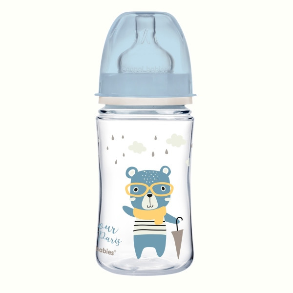 CANPOL BABIES BIBERON ANTICOLIC GAT LARG 240 ML PP BONJOUR PARIS_BLU - 35/232_blu - Biberonul EasyStart BONJOUR PARIS anti-colici a fost creat special pentru copiii foarte mici. Permite combinarea hrănirii la san cu cea din biberon, fiind de ajutor mamei care alăptează. Recipientul are o tetină pentru copii de orice varstă, fabricată din silicon de calitate superioară si care seamănă cu forma unui mamelon. Tetina este prevăzută si cu un sistem special anti-colici care reduce bulele de aer si durerea colică, abdominală, ragaiala excesivă si acumularea de gaze. Totul pentru sănătatea burticii bebelusului dvs.! Biberonul BONJOUR PARIS este usor, fabricat din material sigur, fără BPA. Gradatia clară si precisă permite prepararea rapidă a hranei, iar deschiderea largă usurează curătarea biberonului si a tetinei. Biberonul este compatibil cu pompele de san Canpol babies, aspect datorită căruia laptele pompat poate fi dat imediat bebelusului. Capacitate 120 ml.