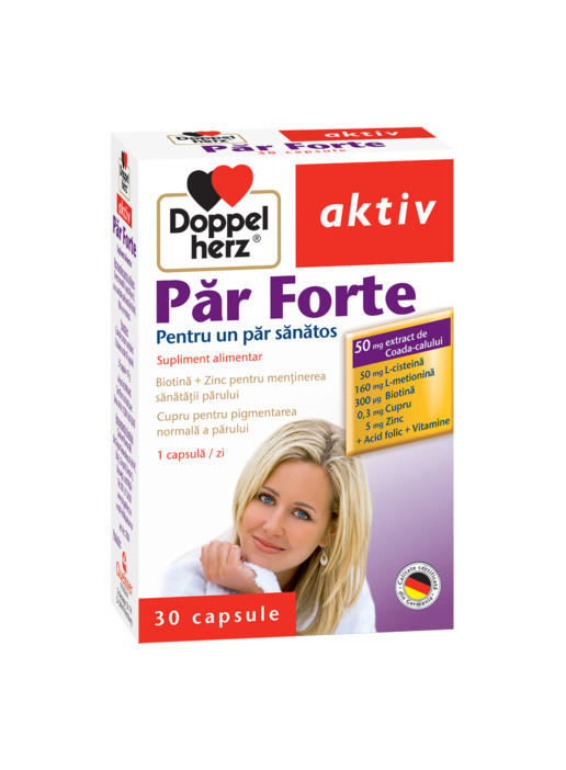Acest produs Capsule cu vitamine pentru par, Par Forte, 30 capsule, Doppelherz din categoria Piele, par si unghii se poate comanda online la un pret redus.