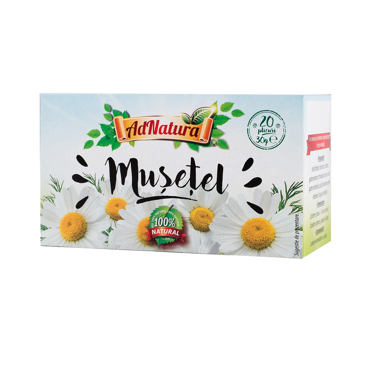 Acest produs Ceai de musetel flori, 20 plicuri, AdNatura din categoria Dieta si nutritie se poate comanda online la un pret redus.