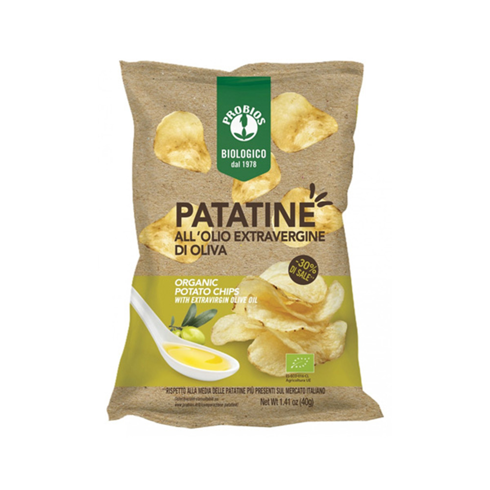 Chipsurile cu ulei de masline extravirgin Probios sunt chipsuri de cartofi din agricultura ecologica, prajite in ulei de masline extravirgin ecologic de calitate. Garantat fara gluten.