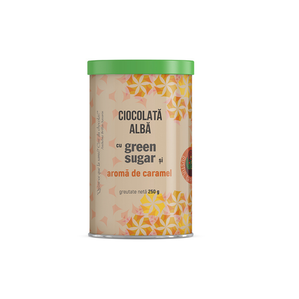 Acest produs Ciocolata alba cu green sugar si aroma de caramel, 250g, Laboratoarele Remedia din categoria Dieta si nutritie se poate comanda online la un pret redus.