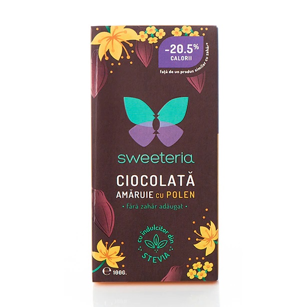 Acest produs Ciocolata amaruie cu 70% polen, 100g, Sweeteria din categoria Dieta si nutritie se poate comanda online la un pret redus.