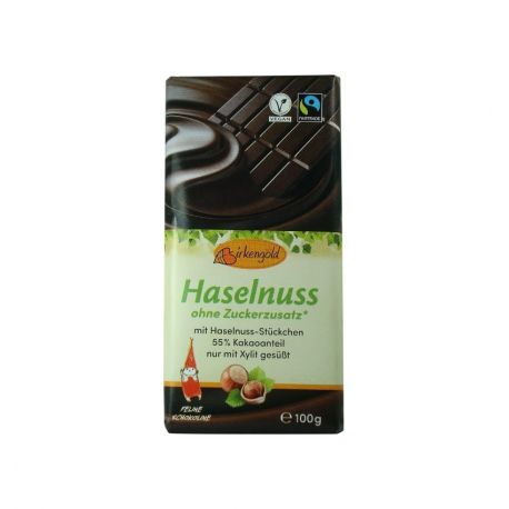 Ciocolata neagra cu alune fara adaos de zahar 55% cacao, 100g, Birkengold.