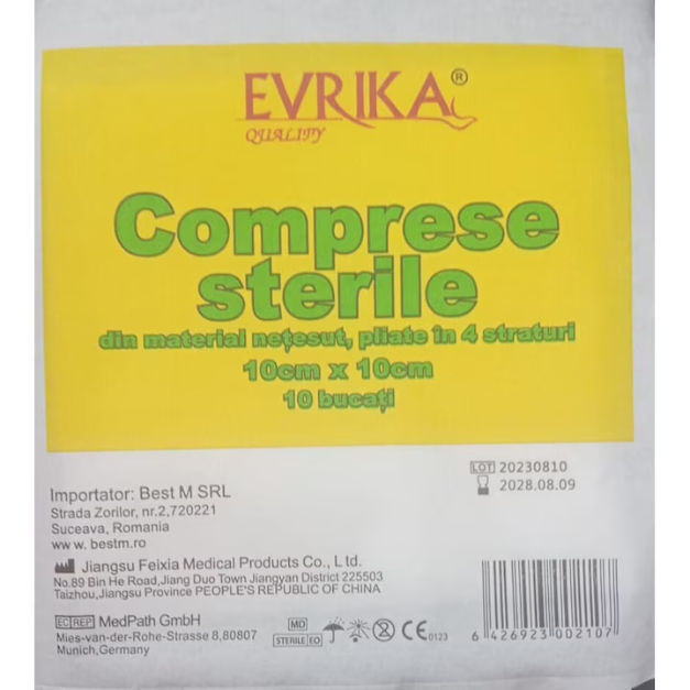 Compresele sterile netesute, pliate, 10x10 cm, 10 buc, Evrika Quality sunt esentiale pentru ingrijirea ranilor si protejarea zonelor sensibile.