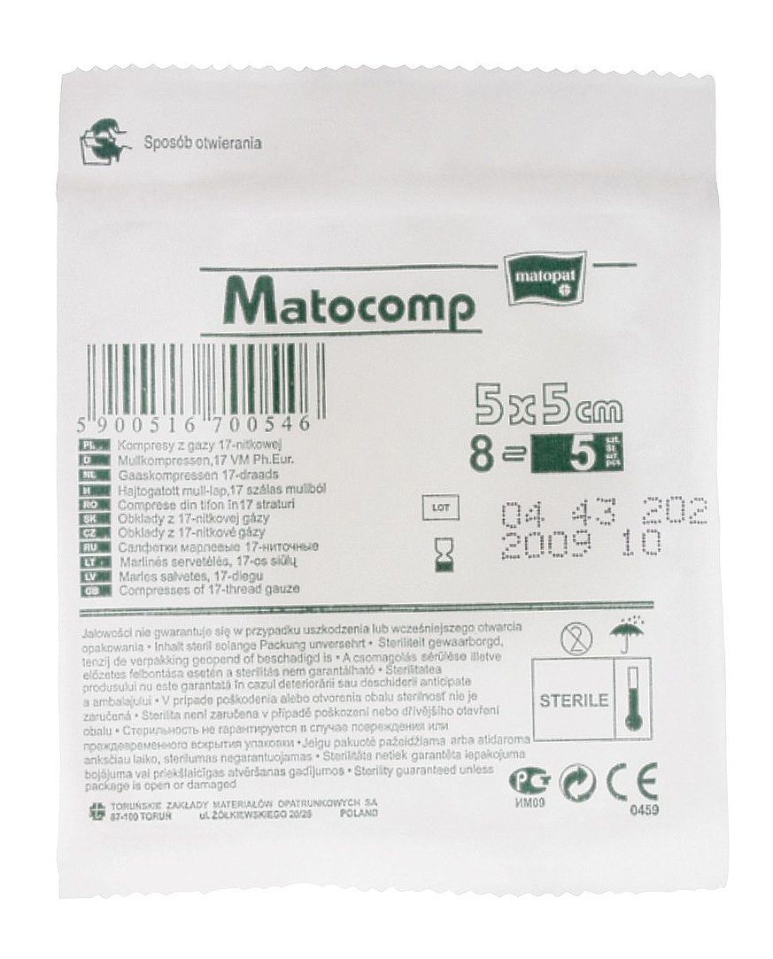 Acest produs Comprese sterile tifon blister 8 straturi 17 fire 5x5cm, 5 bucati, Matopat din categoria Tehnico-medicale se poate comanda online la un pret redus.