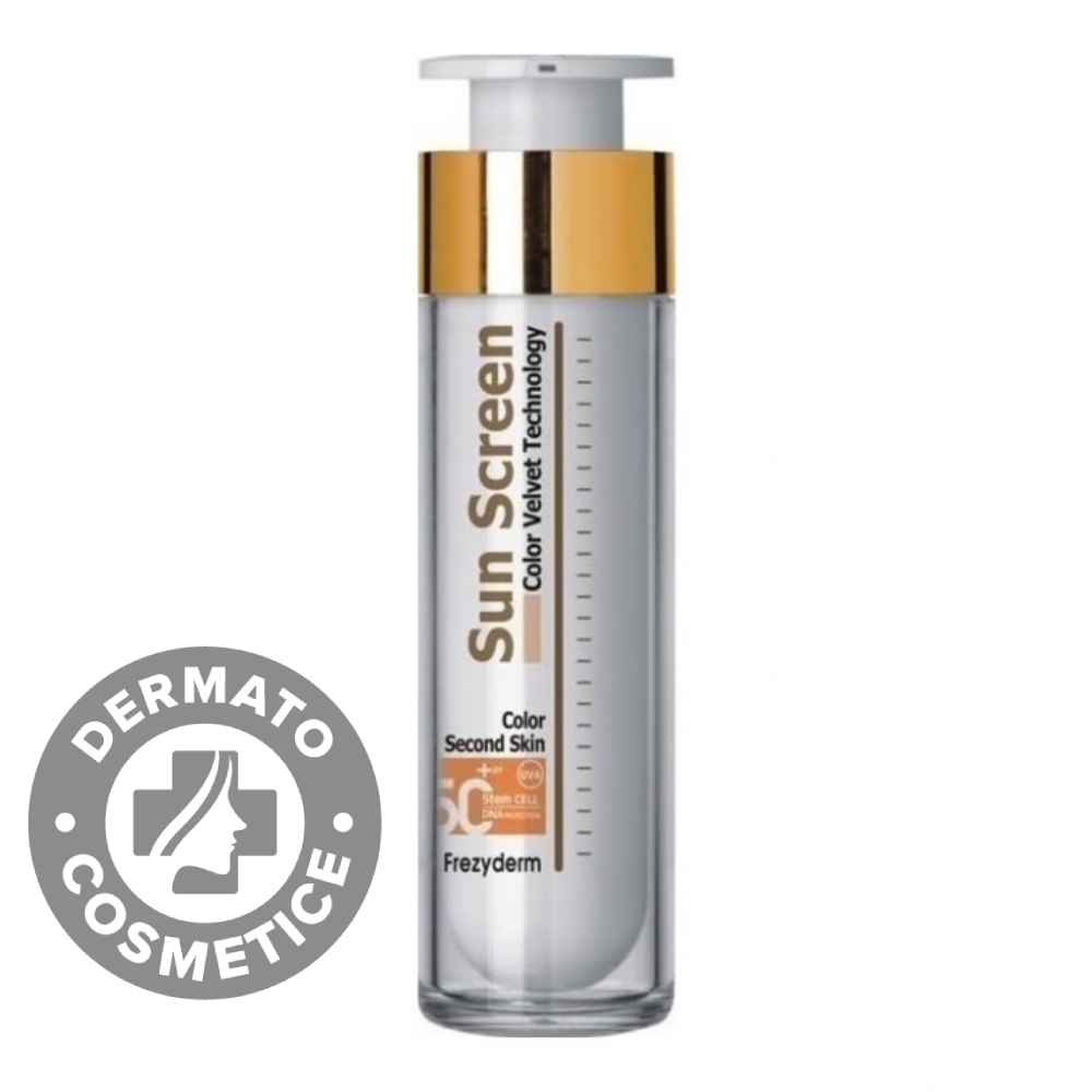 Creama Sun Screen Color Velvet Face SPF 50+ cu Tehnologie Second Skin UVB-UVA-VIZ-IR are protectie foarte ridicata. Este