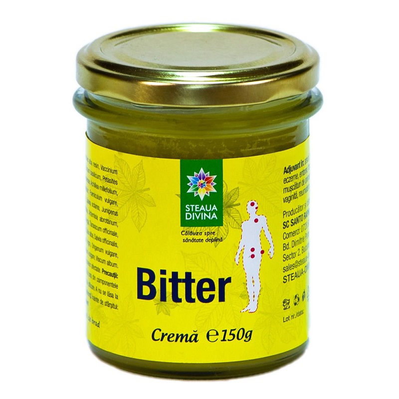 Crema de bitter contine substantele bioactive extrase din cele 39 de plante care fac parte din reteta ”Bitterului romanesc.” Este utila ca adjuvant pentru mentinerea sanatatii tegumentelor si a mucoaselor.