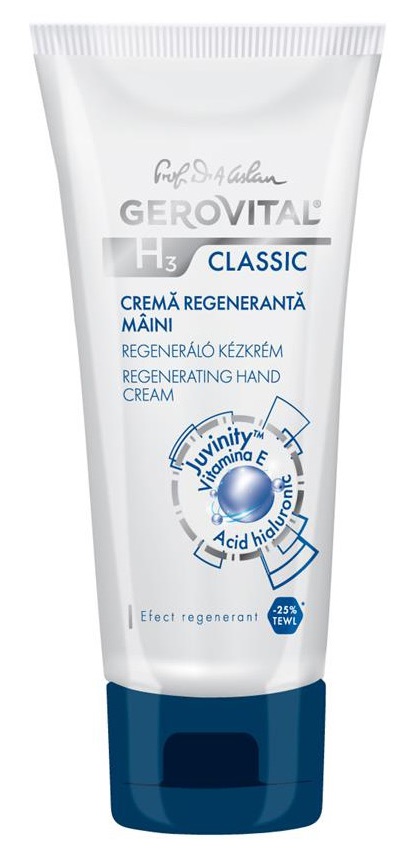 Crema regeneranta pentru maini Gerovital H3 Classic contine Complexul Anti-Age H3 inovator cu actiune regeneranta, si este cea mai buna alegere pentru tratamentul mainilor afectate de factorii externi si de trecerea timpului.