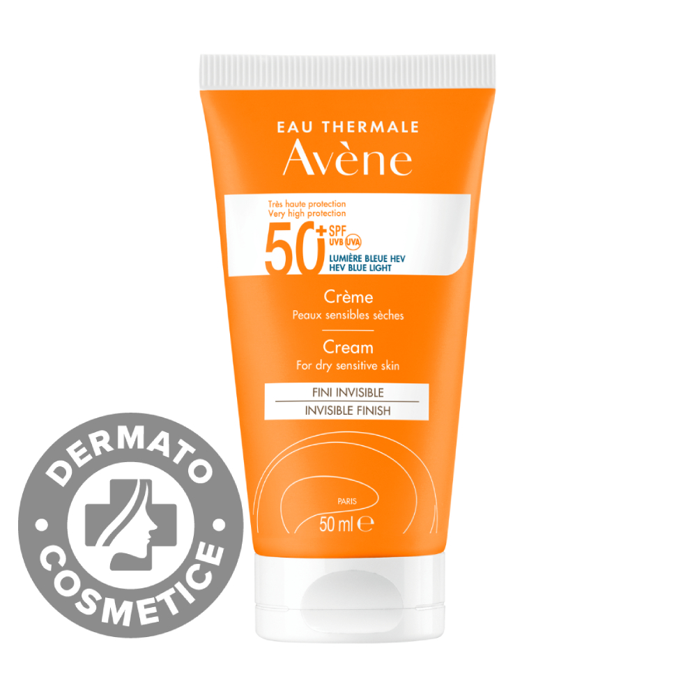 Crema cu SPF 50+ ofera protectie solara zilnica cu spectru ultra-larg.