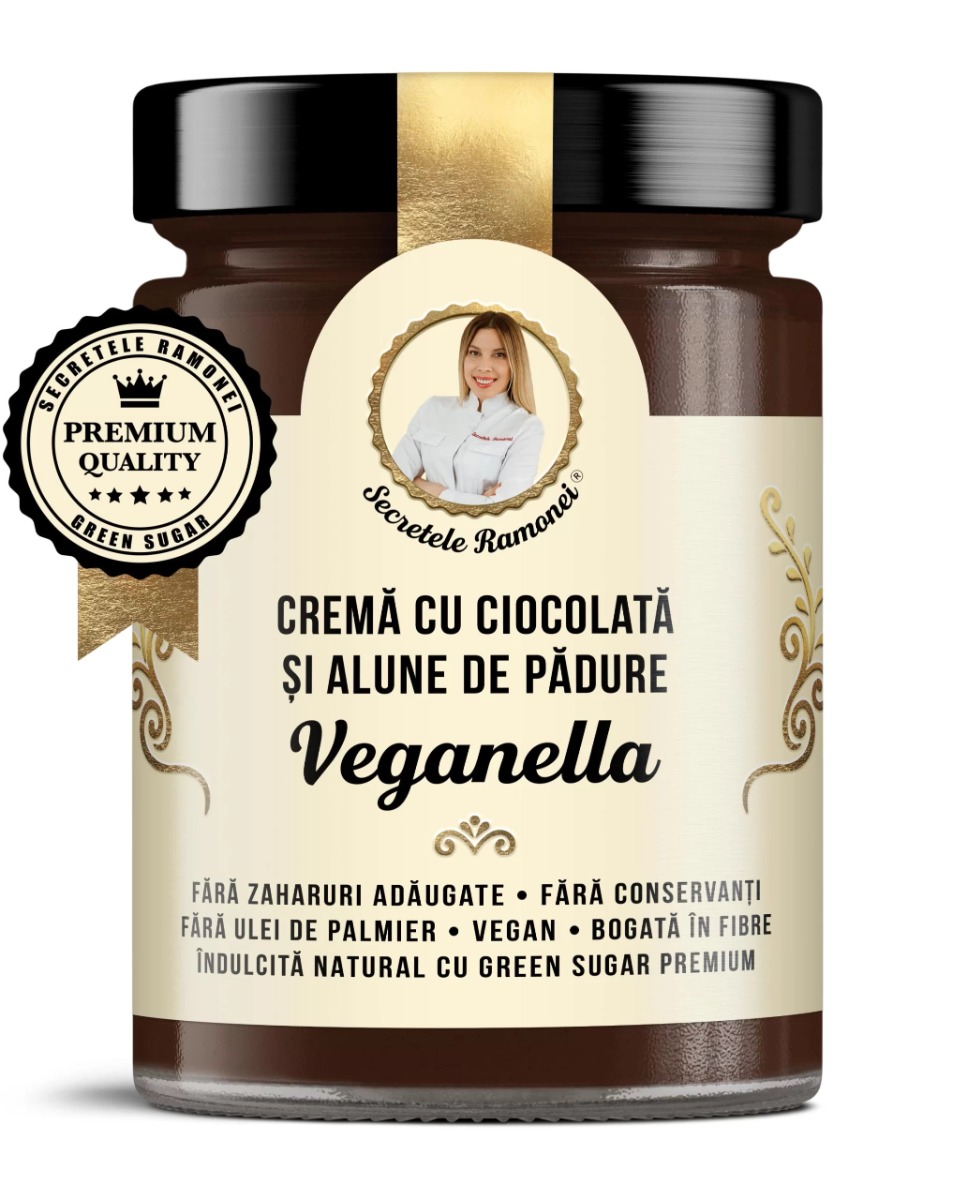 Crema cu ciocolata si alune de padure vegana este bogata in fibre si indulcita natrual cu Green Sugra Premium.