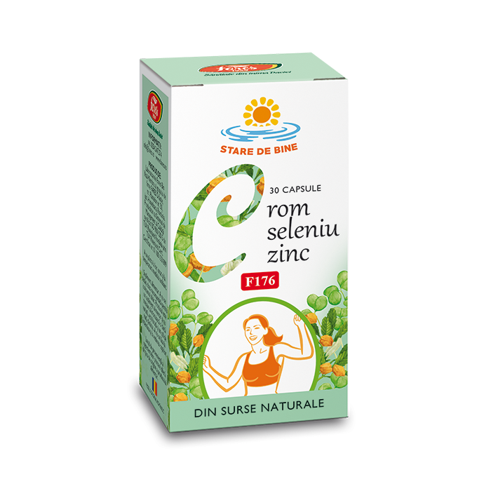 Crom+Seleniu+Zinc F176 este un supliment alimentar recomandat pentru functionarea normala a sistemului imunitar, reglarea metabolismului, a glicemiei si mentinerea dimensiunii normale a prostatei.