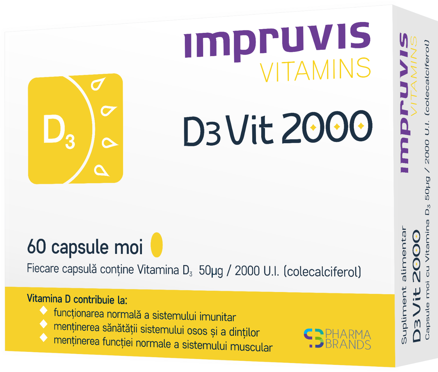 Acest produs D3vit 2000 cu vitamina D3 2000 U.I., 60 capsule moi, Pharma Brands din categoria Suplimente alimentare se poate comanda online la un pret redus.