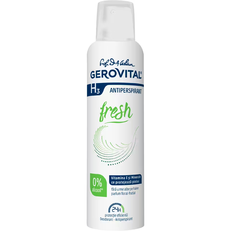 Acest produs Deodorant Antiperspirant Fresh, 150ml, Gerovital din categoria Frumusete si ingrijire se poate comanda online la un pret redus.