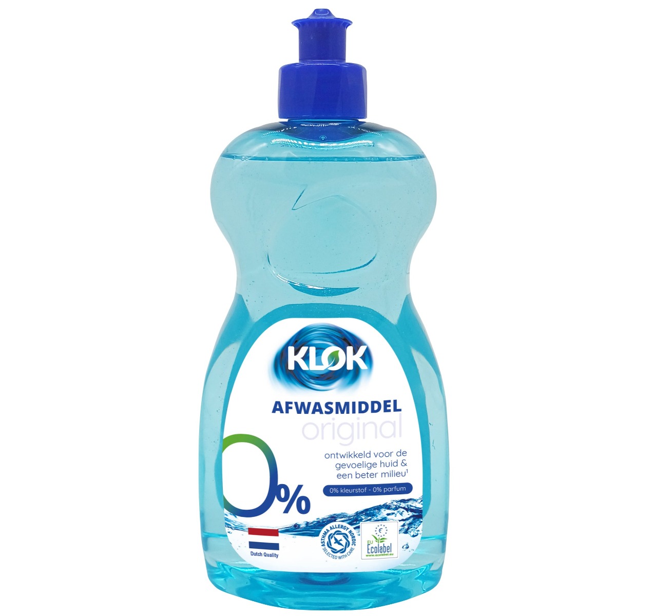 Klok Ecolabel Detergent lichid pentru vase, 0% parfum, 0% coloranti, recomandat de Asthma Allergy Nordic.