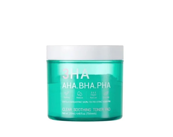 Dischete tonice 3HA, Esfolio, cu AHA/BHA/PHA, tea tree si gotu kola, exfoliaza usor, calmeaza, rafineaza porii si imbunatatesc claritatea pielii.