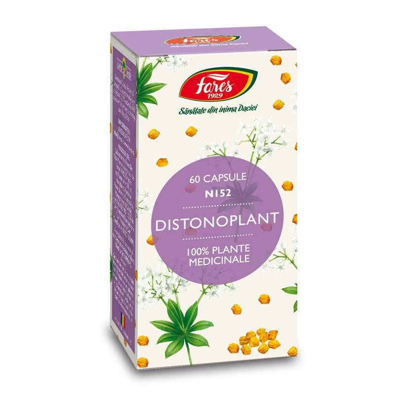 Distonoplant este un supliment alimentar care imbina proprietatile a trei plante recunoscute pentru efectul de linistire a starilor de agitatie nervoasa, imbunatatirea calitatii somnului dar si pentru actiunea tonica in starile de slabiciune si pentru reducerea disconfortului la nivel digestiv.Beneficiile Distonoplant · Are efect calmant in conditii de stres · Ajuta la mentinerea echilibrului psiho-emotional · Calmeaza starile de agitatie nervoasa si iritabilitate · Echilibreaza starea emotionala · Imbunatateste ritmul cardiac · Contribuie la reducerea disconfortului digestiv cu substrat nervos · Creste capacitatea organismului de a se adapta la stres si suprasolicitari Compozitie Distonoplant · Vinarita (Asperulae herba) · Seminte de schinduf (Trigonellae foenugraeci semen) · Serlai (Salviae sclareae herba) Mod de administrare Distonoplant Se recomanda administrarea unei capsule de Distonoplant de trei ori pe zi, intre mese. La nevoie doza poate fi crescuta la sase capsule. O cura poate dura 1-2 luni si se poate repeta dupa o pauza de o luna. Contraindicatii Distonoplant ne este recomandat copiilor sub 16 ani, femeilor insarcinate sau in caz de sensibilitate la ingredientele produsului.