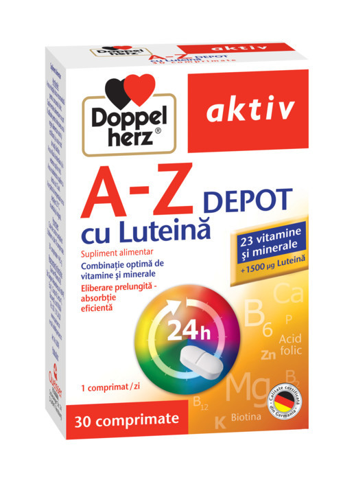 Acest produs DOPPELHERZ Aktiv A-Z ret Luteina x 30tb din categoria Uz general se poate comanda online la un pret redus.