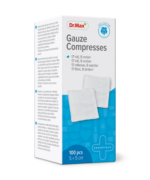 Compresele sunt fabricate din tifon absorbant de bumbac, cu marginile pliate.