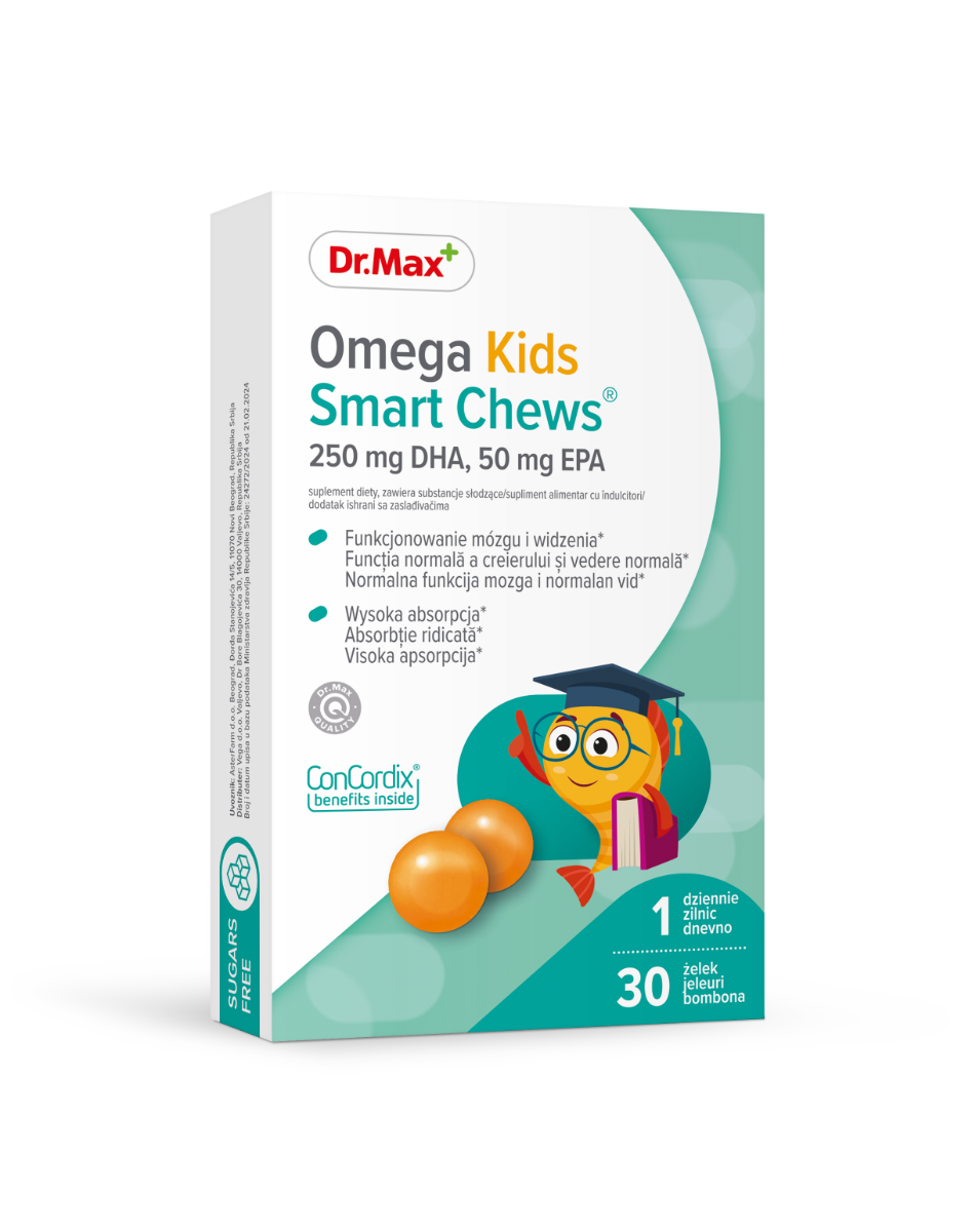 Acest produs Dr. Max Omega Kids Smart Chews, 30 jeleuri din categoria Mama si copilul se poate comanda online la un pret redus.