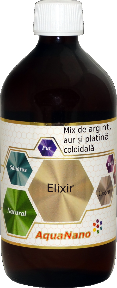 Elixir AquaNano aur, argint, platina coloidala 10ppm mareste acuitatea vizuala si auditiva, creste puterea de concentrare mentala, imbunatateste memoria.