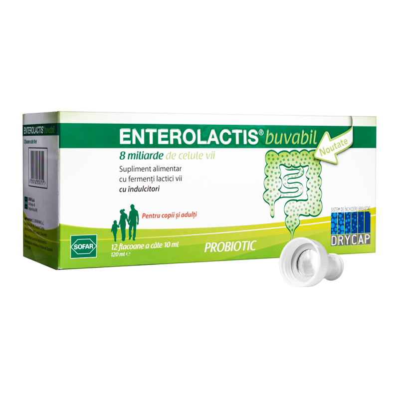 Acest produs Enterolactis buvabil 10ml, 12 flacoane, Sofar din categoria Suplimente alimentare se poate comanda online la un pret redus.