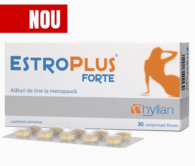 EstroPlus® Forte – 30 comprimate EstroPlus® Forte este un supliment natural destinat femeilor aflate in premenopauza , menopauza si postmenopauza , ce ajuta la reducerea simptomelor specifice acestei perioade. Cu un continut ridicat de izoflavone din soia si Trifoi rosu , precum si antioxidanti proveniti din semintele de struguri si vitamina E , EstroPlus® Forte contribuie la ameliorarea simptomelor precum bufeurile , iritabilitatea si nelinistea . De asemenea, protejeaza celulele impotriva stresului oxidativ si sustine sanatatea generala a femeii. Beneficii principale: Reduce simptomele menopauzei , cum ar fi bufeurile, transpiratia si iritabilitatea, datorita extractului de Trifoi rosu Echilibreaza hormonii in timpul premenopauzei si menopauzei, cu ajutorul izoflavonelor din boabe de soia si Trifoi rosu Protejeaza celulele impotriva stresului oxidativ, datorita vitaminei E Imbunatateste sanatatea pielii si contribuie la un aspect general mai sanatos datorita extractului din seminte de struguri Contribuie la reducerea iritabilitatii si nelinistii specifice acestei perioade Mod de administrare: 1 comprimat filmat pe zi, seara sau dimineata, la o ora dupa masa. Pentru un efect maxim , se recomanda o cura de cel putin 6 luni . Ingrediente active per comprimat: Isoflavone din boabe de soia – 50 mg Isoflavone din parti aeriene de Trifoi rosu – 30 mg Proantocianidine din seminte de struguri – 30 mg Vitamina E (acetat de D-alfa-tocoferil) – 12,6 mg (105% din VNR) Precautii: Nu se recomanda persoanelor alergice la soia sau celor care au hipersensibilitate la oricare dintre ingredientele produsului. Prezentare: Cutie cu 30 comprimate filmate (3 blistere a cate 10 comprimate fiecare).