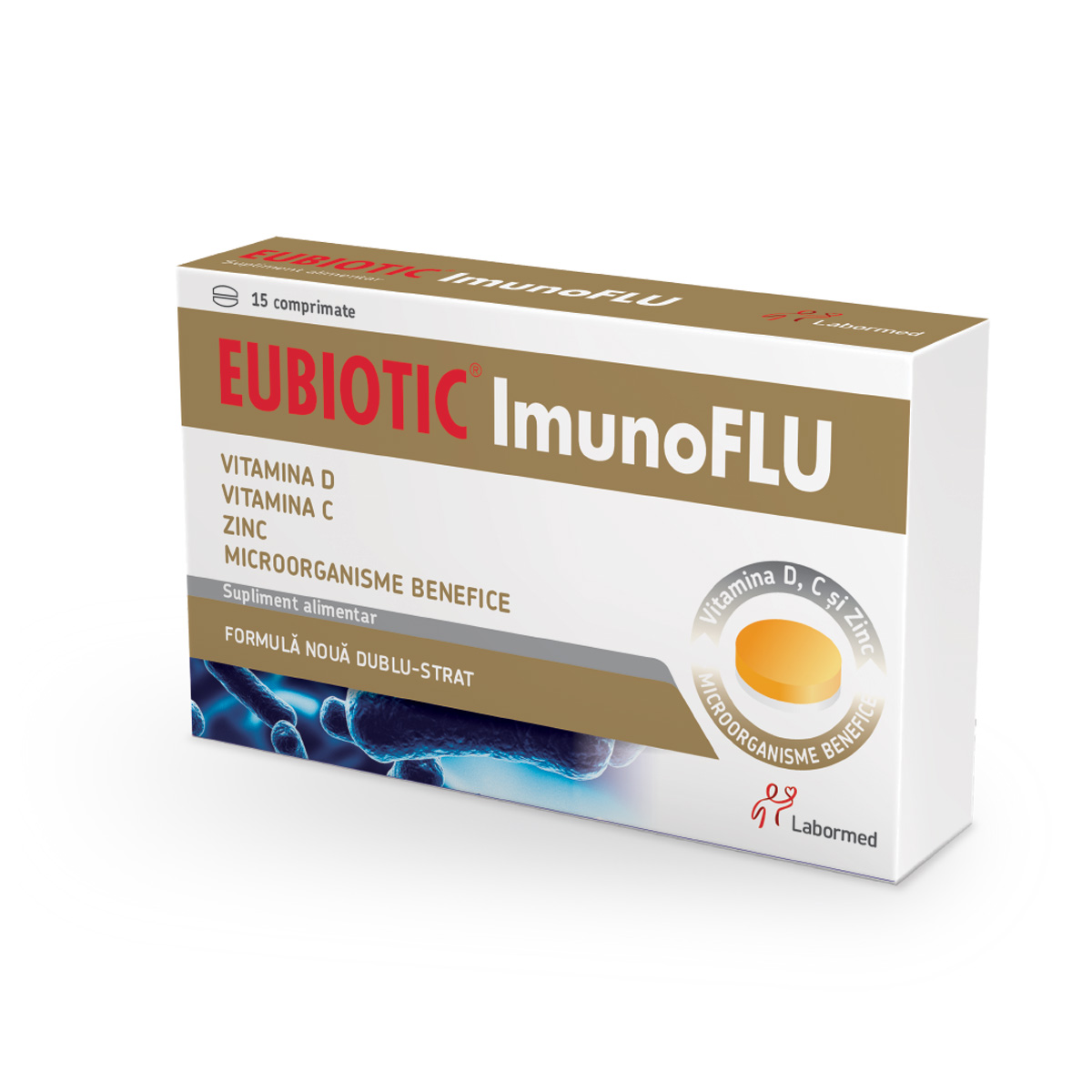 Eubiotic Imunoflu este un supliment alimentar ce combina intr-o formula noua tulpini multiple de microorganisme benefice pentru organism , bine studiate clinic, cu Vitamina D, Vitamina C si Zinc.