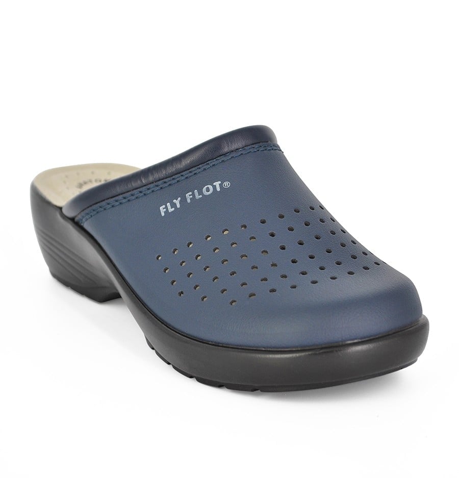 FF002 Saboti profesionali medicali culoare bleumarin, cu talpa anatomica realizata din poliuretan cu densitate mare. Acesti saboti cu talpa ortopedica dedicati pentru industria alimentara, cadre medicale si personal auxiliar, angajati in industria hoteliera, farmaceutica si alte zone de activitate care implica lucrul din picioare, diminueaza considerabil senzatia de oboseala a picioarelor.