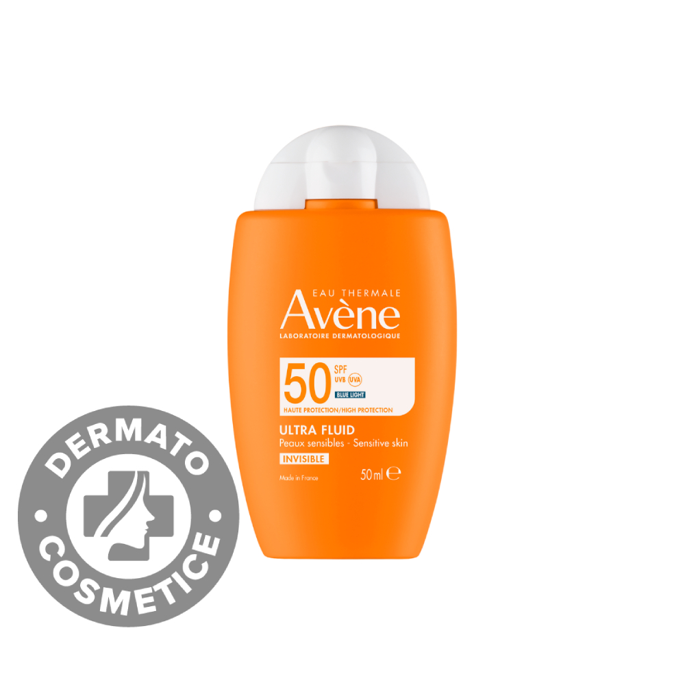 Avene Ultra-Fluid SPF50+ ofera o protectie zilnica ridicata impotriva UVB, UVA si HEV (lumina albastra) pentru a preveni fotoimbatranirea.