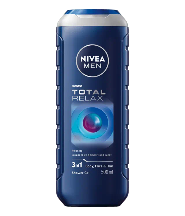Gel de dus Total Relax Nivea, cu ulei de levantica si cedru, relaxant, 3 in 1 pentru corp, fata si par, hidratare si ingrijire delicata.