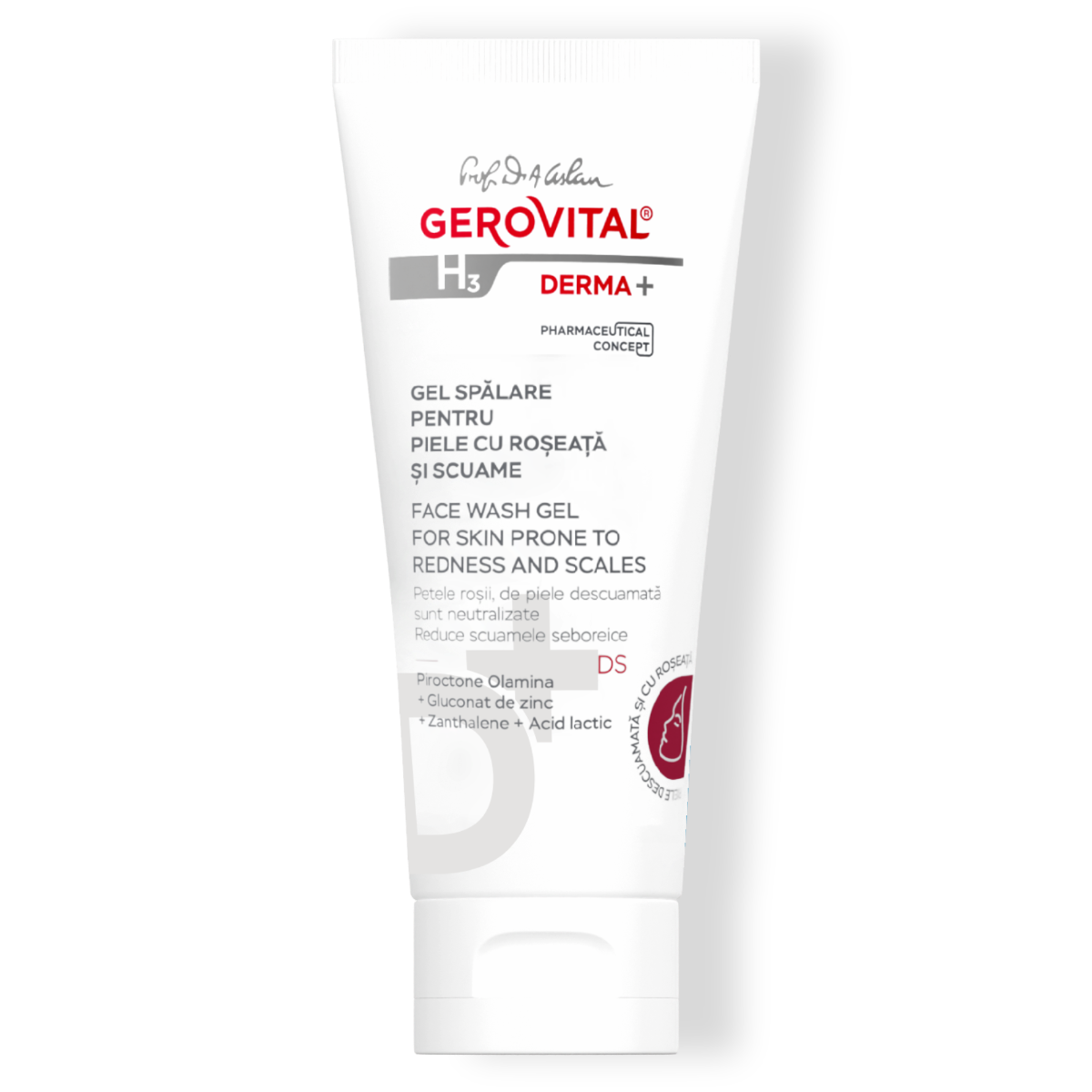 Gelul Spălare pentru Piele cu Roșeață și Scuame Gerovital H3 Derma+ conține ingrediente cu acțiune complementară în îngrijirea pielii sensibile cu roșeaţă și scuame, localizate în zonele bogate în sebum: în jurul nasului, sprâncenelor și pe frunte. Conține Acid Lactic pentru îndepărtarea scuamelor și Zanthalene cu acțiune de calmare prin diminuarea senzației de înțepături și disconfort și a roșeții pielii....