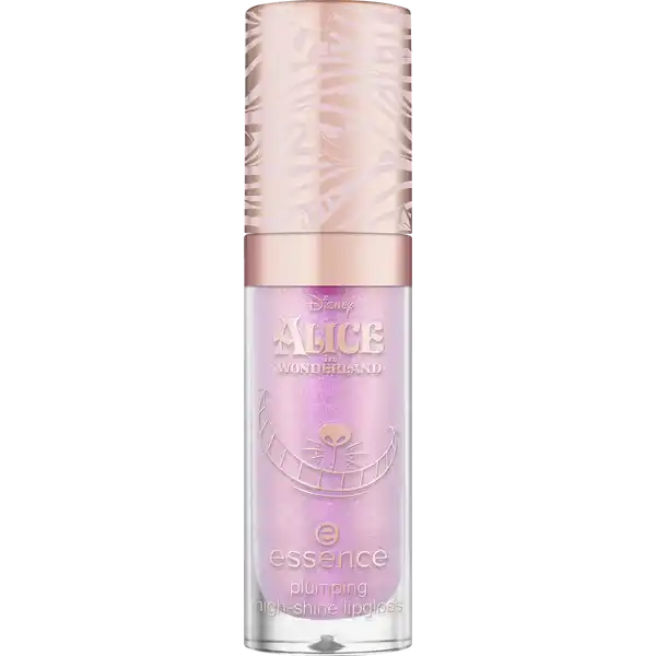 Gloss cu stralucire intensa, particule roz-aurii si mov, efect de volum cu mentol si parfum de mure, inspirat de Disney Alice in Wonderland.