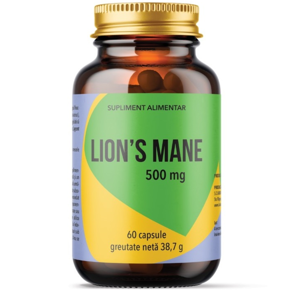 Lion's Mane 500mg este un supliment alimentar din extract standardizat cu min. 20% polizaharide din Coama Leului (Hericium erinaceus).