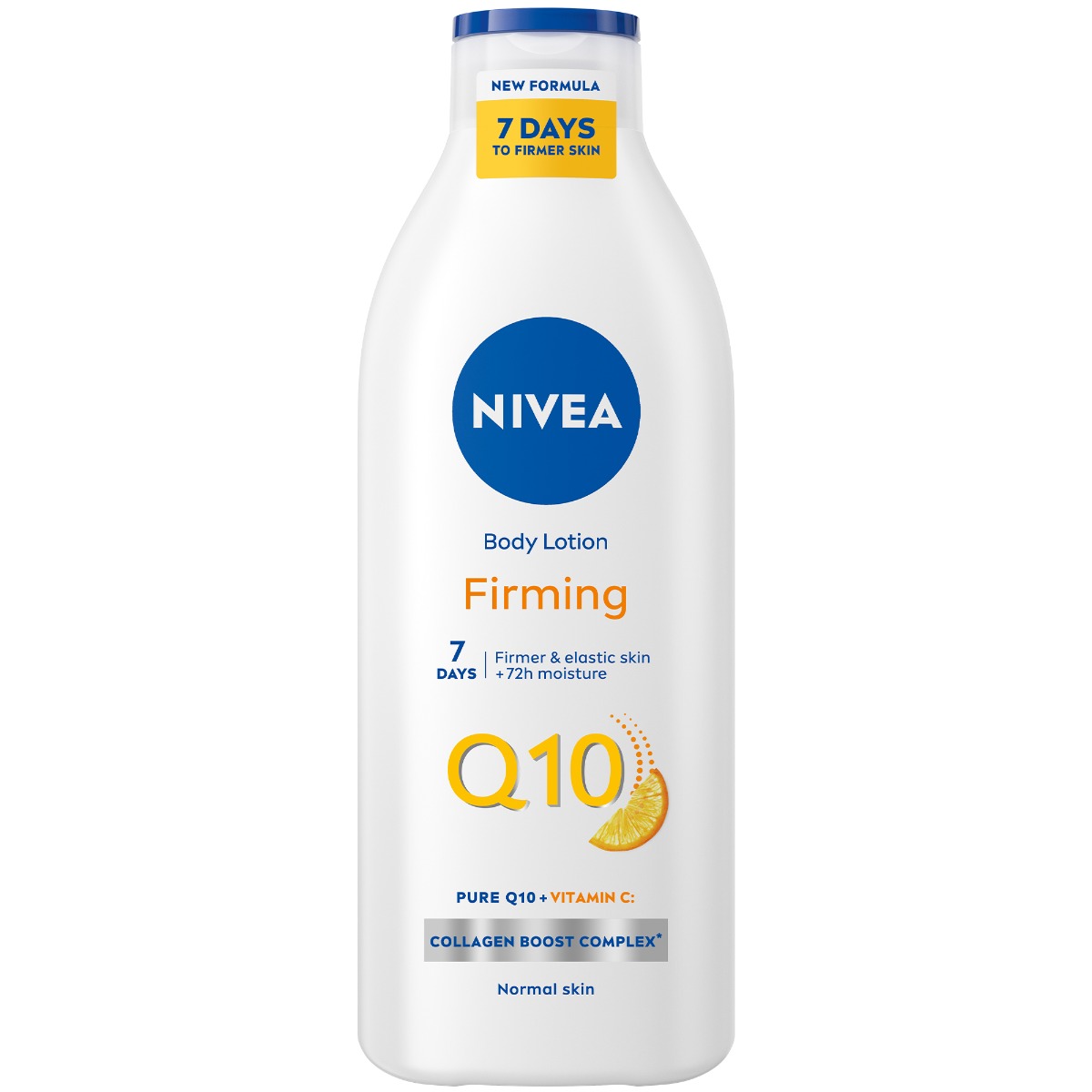 Lotiunea de corp pentru fermitate Q10 Nivea tonifica si hidrateaza pielea datorita coenzimei Q10, vitaminei C si complexului Collagen Boost.