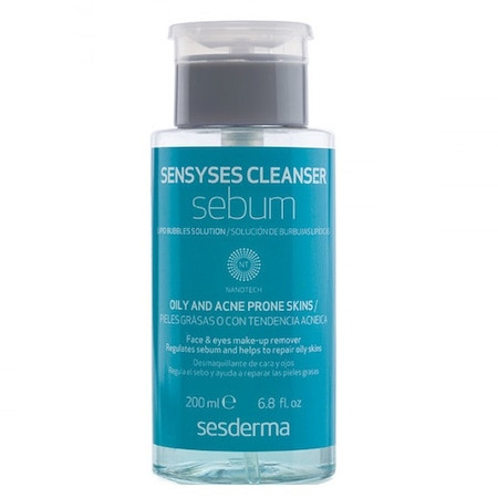 Lotiune demachianta pentru ten gras cu tendinta acneica Sensyses, 200 ml, Sesderma [8429979414571] Inovatie nanotehnologica ce capteaza impuritatile lipo si hidrosolubile. Mod de utilizare: Apasati pompita pentru a imbiba tamponul de vata cu produs si curatati zona care trebuie tratata pentru a indeparta resturile de impuritati de pe piele. Prezentare: 200 ml