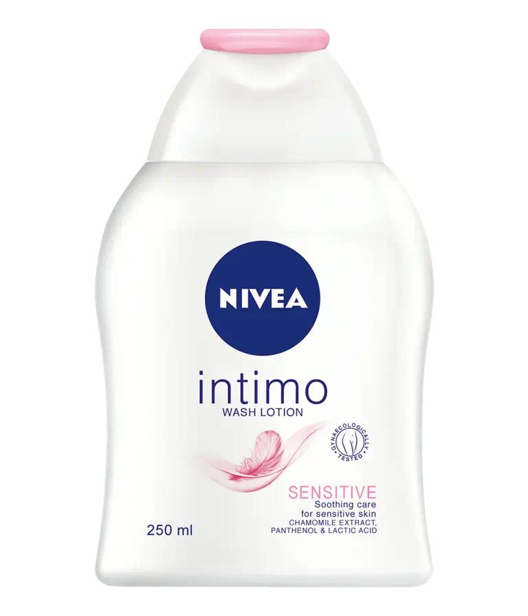 Lotiunea pentru curatare Intimo Sensitive Nivea curata delicat zona intima, calmeaza pielea sensibila si mentine pH-ul natural datorita musetelului, pantenolului si acidului lactic.
