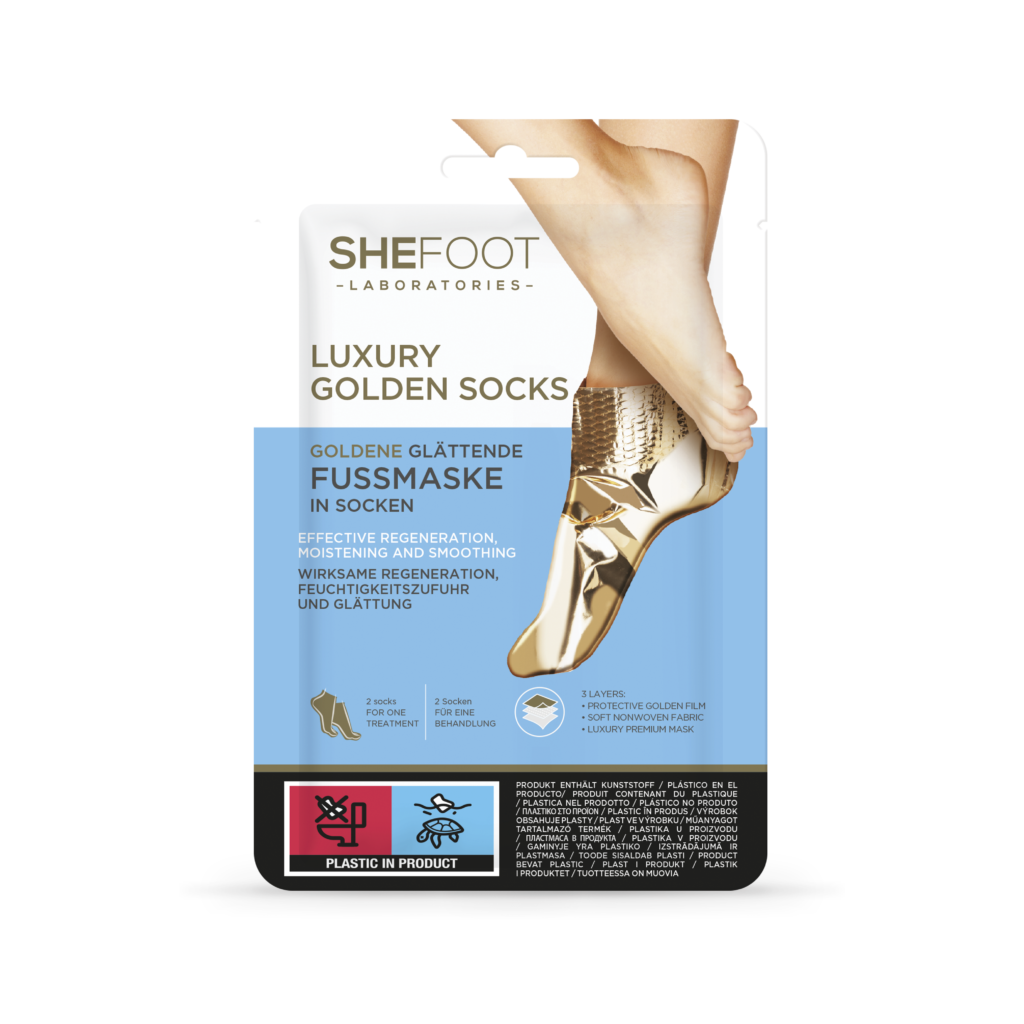 Sosetele Luxury Golden reprezinta o masca pentru picioare sub forma unor sosete cu aspect impresionant.