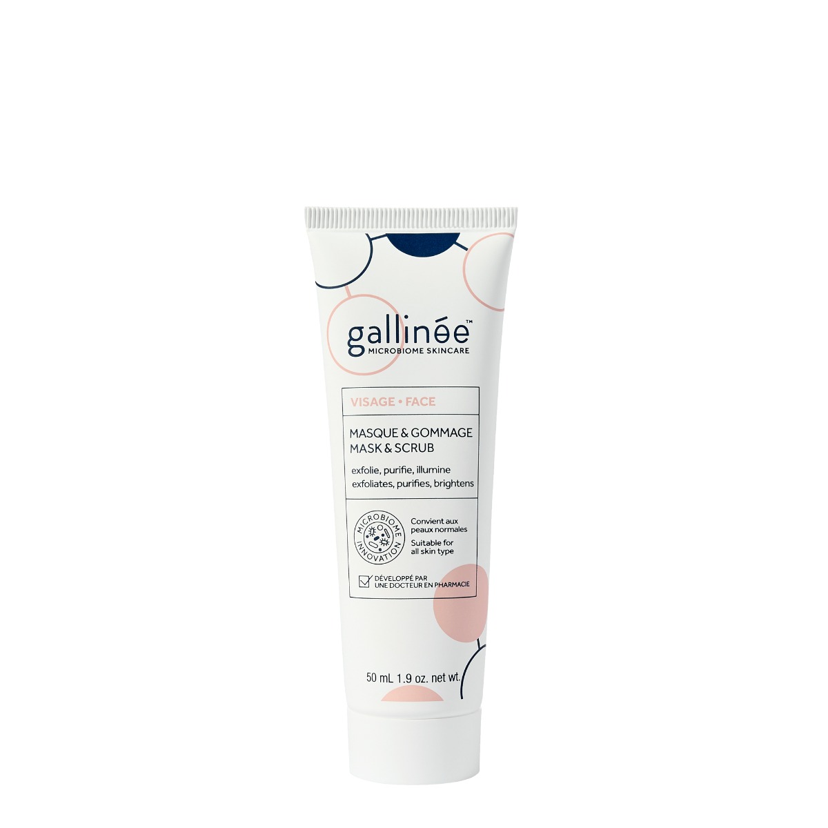 Masca si exfoliant pentru fata, 50ml, Gallinee exfoliaza delicat, purifica, ilumineaza si sustine microbiomul pielii datorita complexului biotic cu acid lactic, prebiotice si argila kaolin.