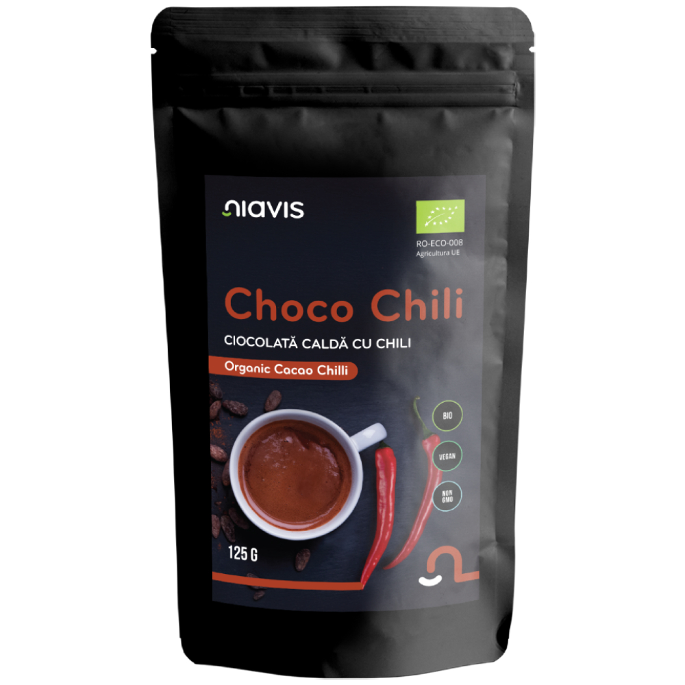 Choco Chili Mix Ecologic/Bio de la Niavis este o bautura inovatoare si surprinzatoare care combina aroma intensa a ciocolatei cu caldura picanta a chili-ului.