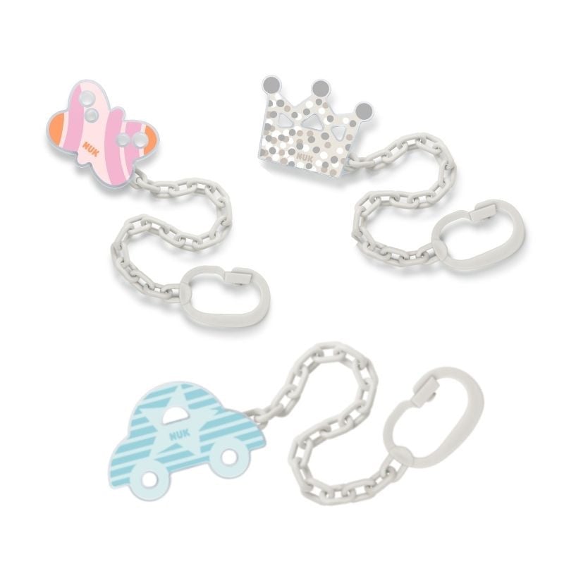 Atentionari Nuk Lant suzeta:* Diverse culori vesele, culoarea poate sa difere in functie de disponibilitate.Daca doriti o anumita culore/model, va rugam sa ne lasati mesaj in rubrica de observatii din finalizarea comenzii.Lant pentru Suzete NUK, cu clips, modalitatea usoara si practica de a atasa suzeta de hainele copilului, fara BPA.Lanturile pentru suzete sunt foarte practice si previn caderea sau pierderea suzetei. Multumita clipsului, lantul poate fi prins foarte usor de hainele copilului, in timp ce suzeta este prinsa de lant printr-un carlig. Lanturile pentru suzete de la NUK sunt fabricate dintr-un material sintetic de calitate superioara, incasabil, disponibil in mai multe variante grafice. Lanturile sunt gata de folosire in orice moment si te asigura ca suzeta ramane intotdeauna acolo unde este prinsa. Mai mult decat atat, datorita aspectului dragut, acestea sunt un accesoriu minunat, care se potriveste cu orice tinuta vestimentara a copilului.