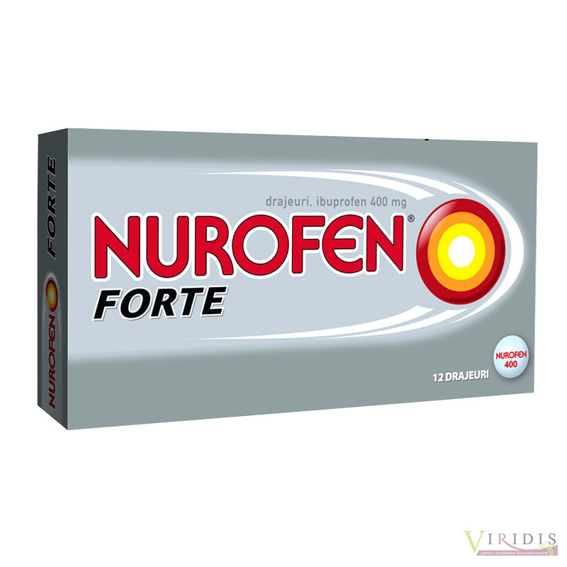 Nurofen Forte, 400mg, 12 drajeuri - Nurofen Forte este indicat in tratamentul migrenei, cefaleei, durerilor de spate, dentare, reumatice, musculare, menstruale