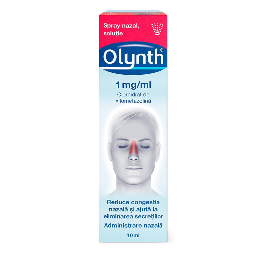 Olynth 1mg/ml x 10ml spray nazal - Este indicat pentru reducerea congestiei mucoasei nazale in coriza (guturai), gripa, rinita vasomotorie, rinita alergica si