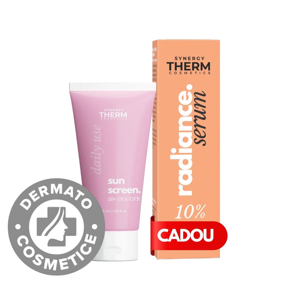 Acest produs Pachet Crema cu protectie solara SPF 50+ 50ml + Serum Radiance 30ml, Synergy Therm din categoria Frumusete si ingrijire se poate comanda online la un pret redus.