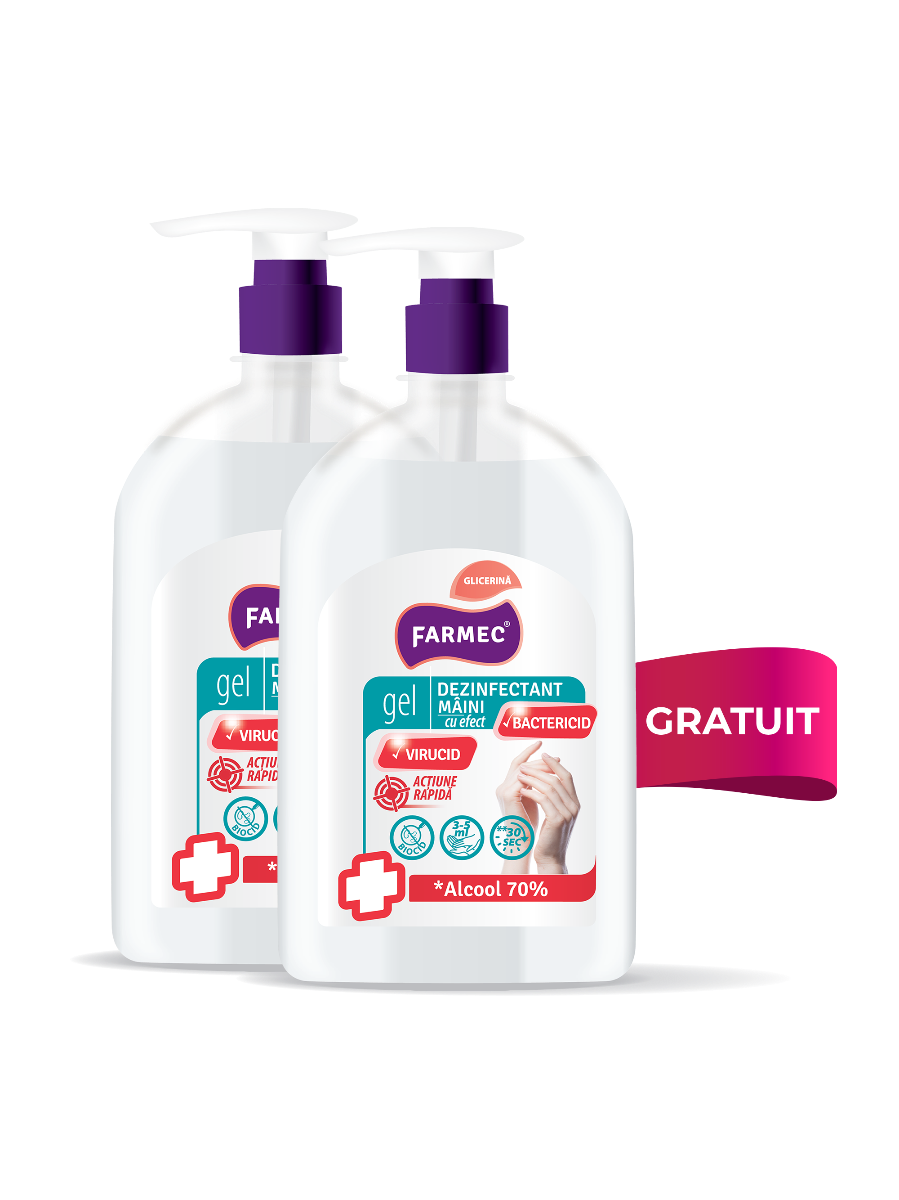 Acest produs Pachet Promo 1 + 1 Gratuit Gel Dezinfectant Mini Cu Alcool 70% și Glicerină, 500 Ml din categoria Produse pentru Ingrijirea Mainilor se poate comanda online la un pret redus.